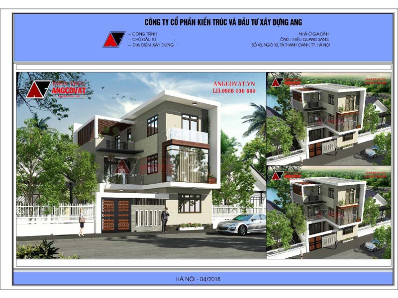 Thiết kế nhà theo phong cách kiến trúc hiện đại ngày càng được nhiều gia đình ưa chuộng bởi vì sự đơn giản, không cầu kỳ nhưng vẫn đảm bảo sự sang trọng và tiện nghi cho gia chủ. Mẫu nhà phố 1 trệt 2 lầu sân thượng dưới đây là một trong số các mẫu nhà được thiết kế theo phong cách hiện đại mà chúng tôi đã thực hiện vào đợt đầu năm 2018 cho chủ đầu tư là ông Triệu Quang Sang ở Hà Nội.