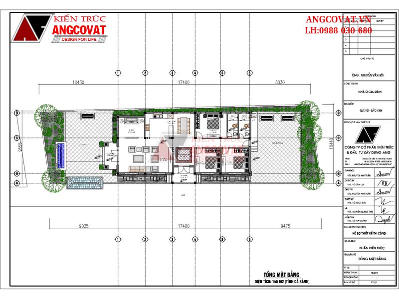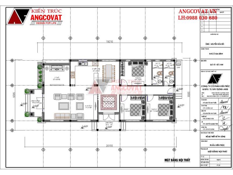 Sau hơn 20 ngày phối hợp làm việc, chú Bồi đã nhận được bộ hồ sơ thiết kế nhà đầy đủ mẫu nhà cấp 4 mặt tiền 9m mái thái 150m2 phong cách hiện đại. Bồ hồ sơ đã thuyết phục khách hàng không chỉ bởi sự chỉn chu mà còn bởi thái độ nhiệt tình, tâm huyết và tay nghề của các kiến trúc sư ANG.