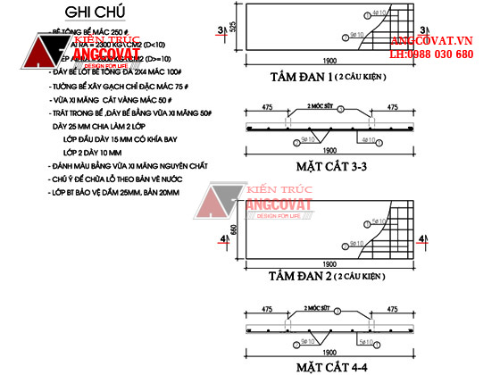 Đáy bể đổ bằng tấm đan bê tông cốt thép mác 200, độ dày tối thiểu là 150mm.