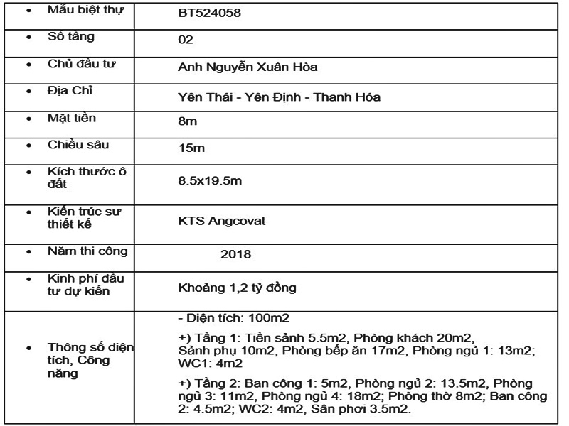 Tham khảo: Biệt thự 2 tầng 3 phòng ngủ
