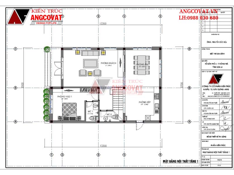 Sau gần 20 ngày gặp gỡ, trao đổi bàn bạc thống nhất giữa anh Hậu ở Sơn La và kiến trúc sư Angcovat, chúng tôi đã đi đến thống nhất và triển khai mẫu thiết kế nhà 3 tầng mặt tiền 9m của gia đình anh Hậu. Kiến trúc sư Angcovat đã gửi bản thiết kế đến tay anh Hậu, anh rất hài lòng với thiết kế nhà 3 tầng mặt tiền 9m của kiến trúc sư Angcovat đã thiết kế cho gia đình anh. Căn nhà hiện giờ đã bắt tay vào những khâu đầu tiên, anh đang rất nóng lòng chờ đợi ngày ngôi nhà của mình hoàn thiện. Còn chúng tôi, những kiến trúc sư của Angcovat luôn sẵn sàng đồng hành cùng quý khách hàng kiến tạo nên những công trình trên khắp đất nước.