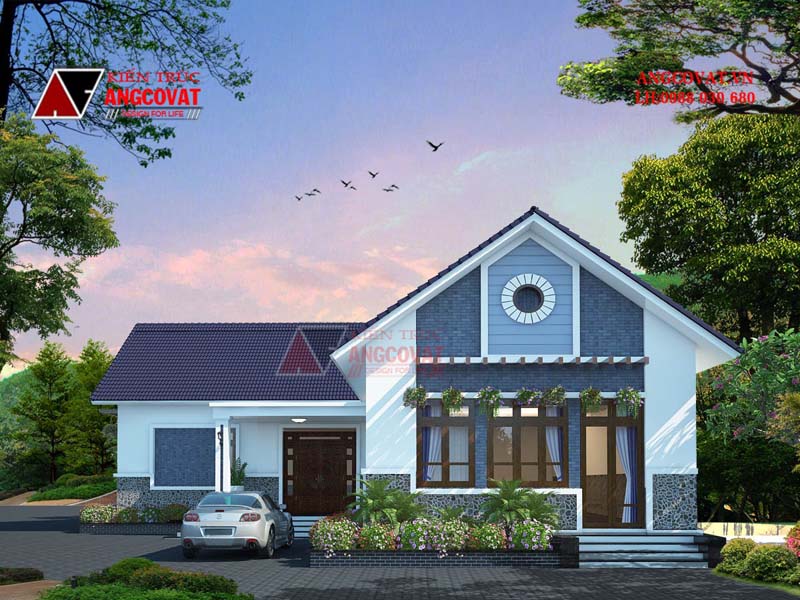 Với ai yêu thích phong cách nhẹ nhàng, thì mái thái luôn là lựa chọn hàng đầu, không bởi tính chất mà còn nằm ở phong cách thiết kế nó cũng được tối giản hoàn toàn, không quá hầm hố. Cùng gam màu xanh than tinh tế của hệ mái tương phản với sắc chủ đạo, những lớp ngói xếp tầng bắt mắt, phần mái không quá cao nên không tạo cảm giác thô cứng mất cân đối cho không gian ngoại thất của mẫu biệt thự vườn 1 tầng 220m2.