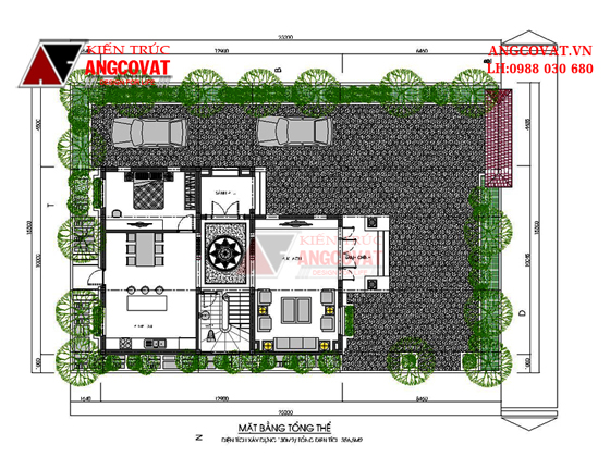 Mặt bằng tổng thể biệt thự mặt tiền 10m 3 tầng hình chữ l 5 phòng ngủ