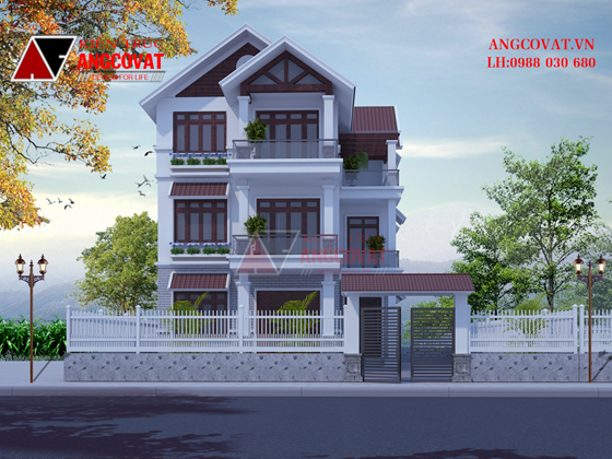 Phối cảnh 01 thiết kế biệt thự mặt tiền 10m 3 tầng mái thái diện tích 120m2