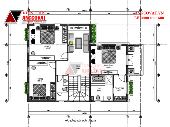 - Tầng 2: 3 phòng ngủ, 2 phòng vệ sinh. 1 phòng sinh hoạt chung.