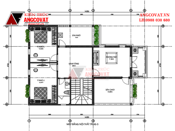 - Tầng 3: 1 phòng thờ, 2 phòng ngủ, 1 sân chơi, 1 sân phơi, 1 phòng vệ sinh
