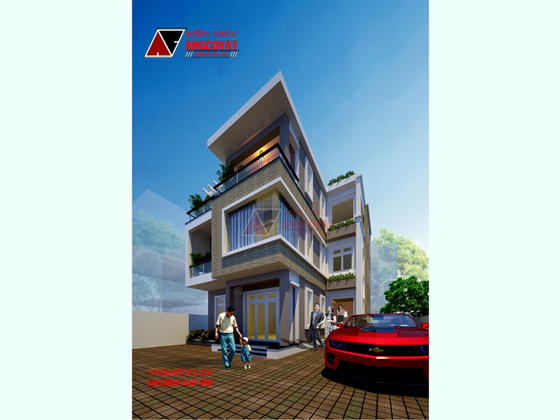 Phối cảnh 01 mẫu nhà 3 tầng hình chữ l kinh phí 2 tỷ đồng mái bằng