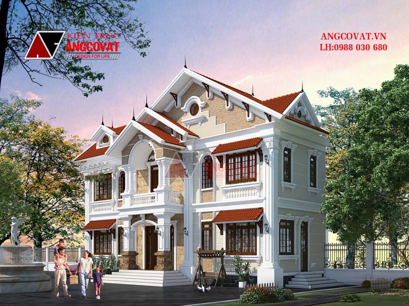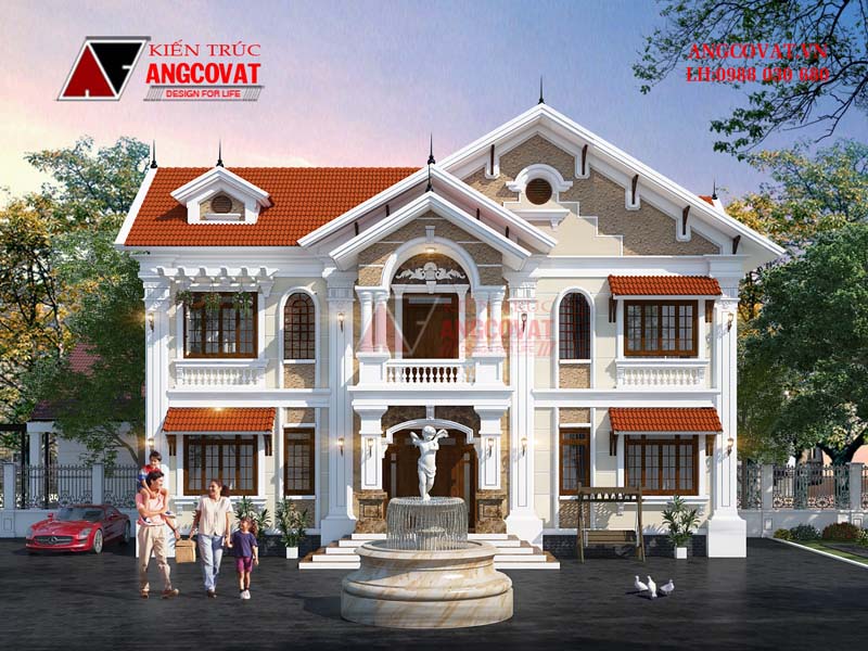 Tư vấn thiết kế kiến trúc mẫu nhà 2 tầng mái thái tân cổ điển đẹp