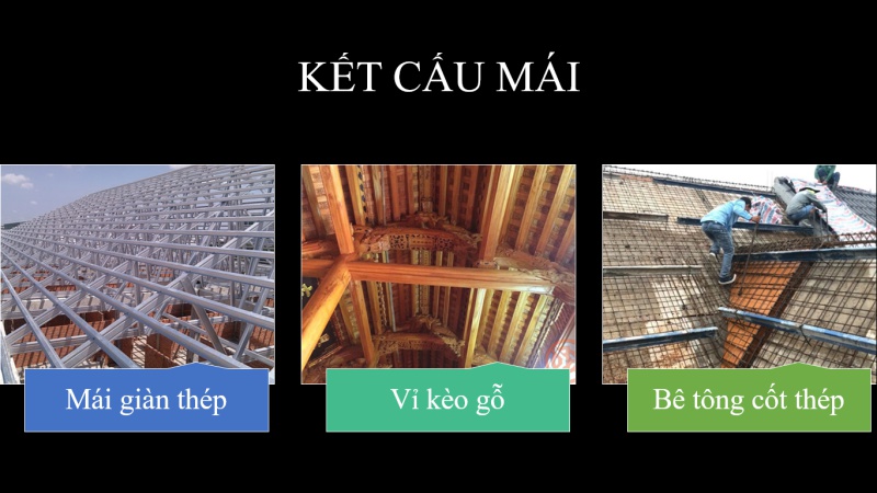 Kết cấu mái nhà bao gồm 2 bộ phận chính là kết cấu bao che và kết cấu chịu lực.