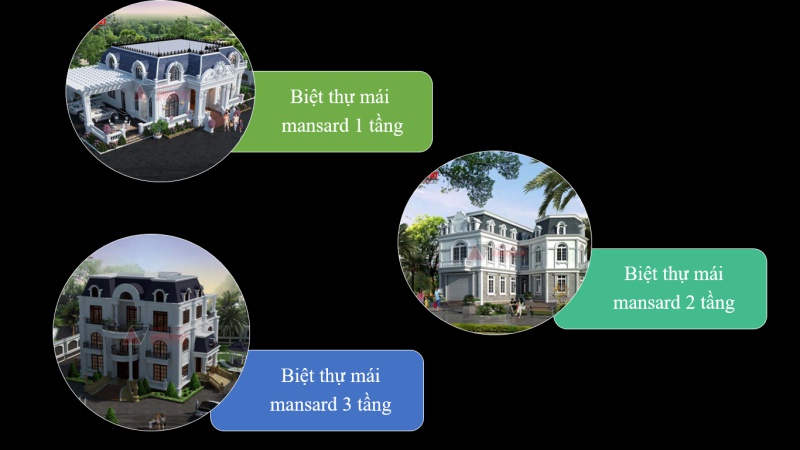Với cấu tạo hình dáng và chất liệu sử dụng, mái mansard cho phép người chủ gia đình tận dụng toàn bộ không gian tầng mái để sử dụng. Có phần phức tạp hơn về kết cấu cũng như cách trang trí phào chỉ, kiểu mái này mang lại sự bề thế, hoành tráng và vô cùng sang trọng cho ngôi biệt thự mang phong cách cổ điển châu âu.