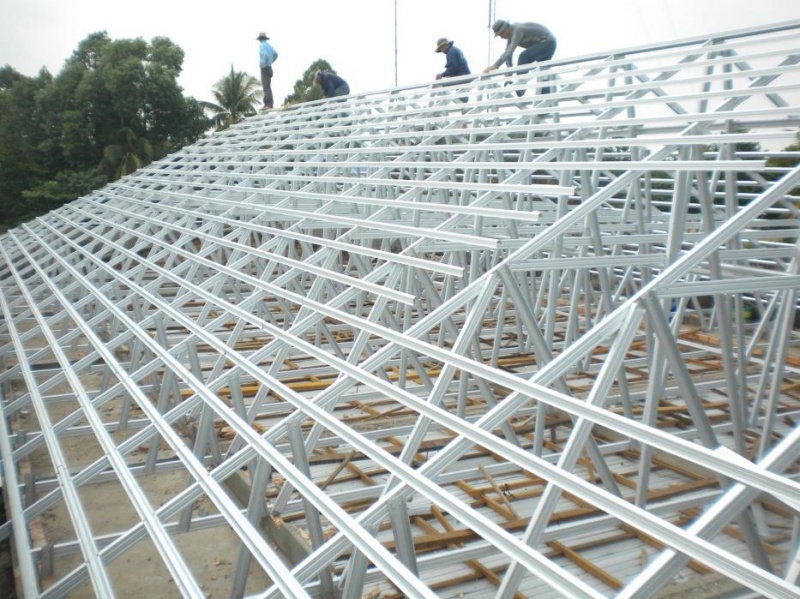 Hình ảnh thi công mái giàn thép