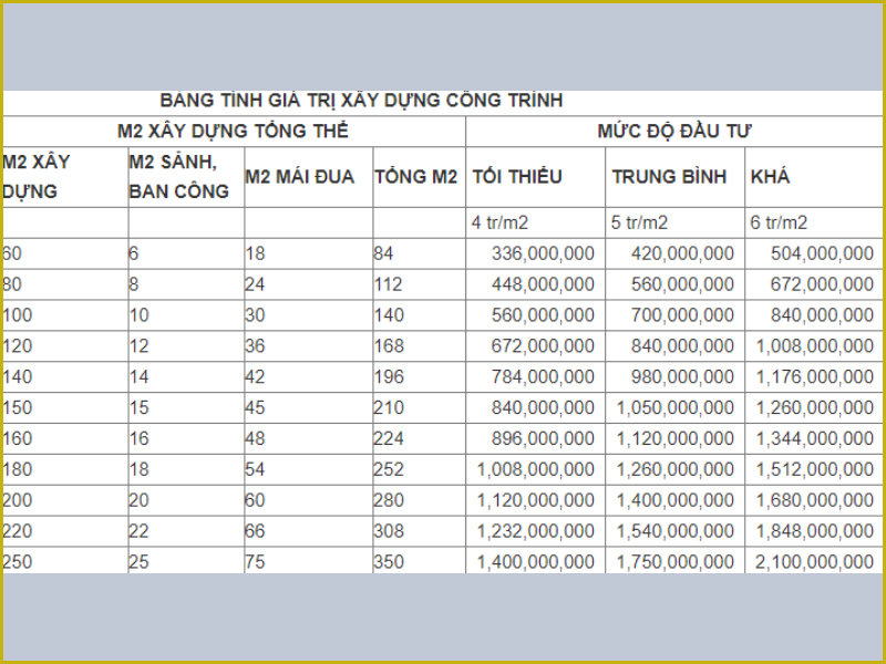 Dựa vào bảng tính đơn giá quý vị có thể tự khái toán đơn giá, chi phí xây dựng cho ngôi nhà của mình một cách dễ dàng.
