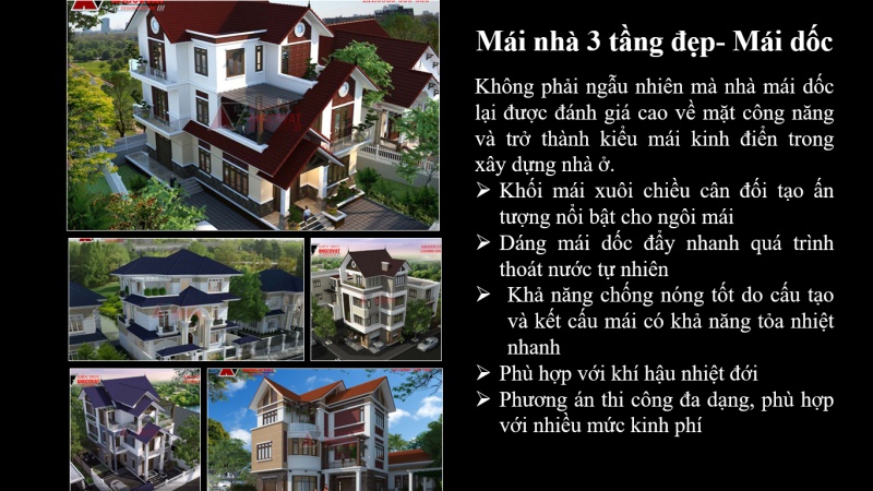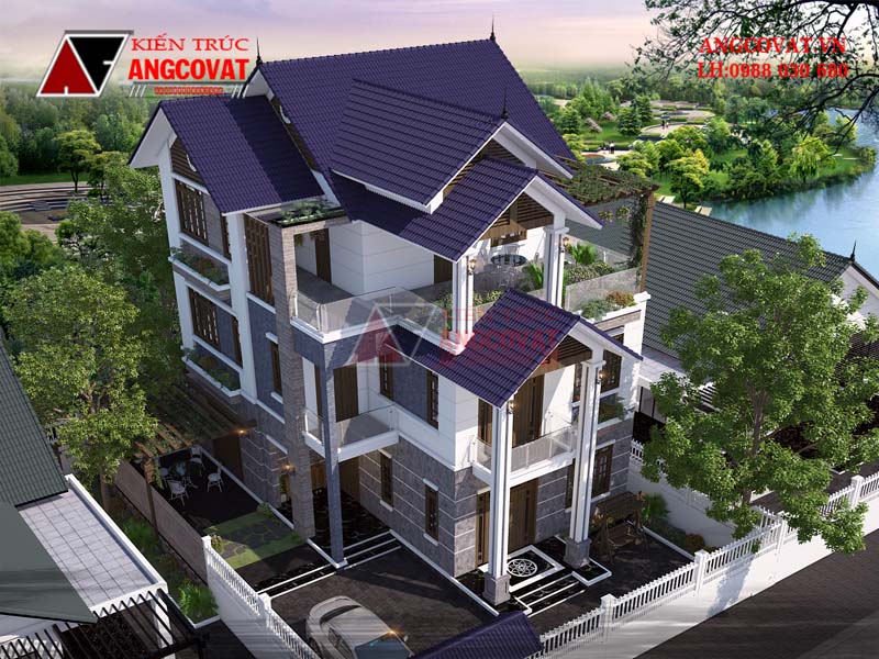 Mái nhà 3 tầng đẹp- Biệt thự 3 tầng mái dốc