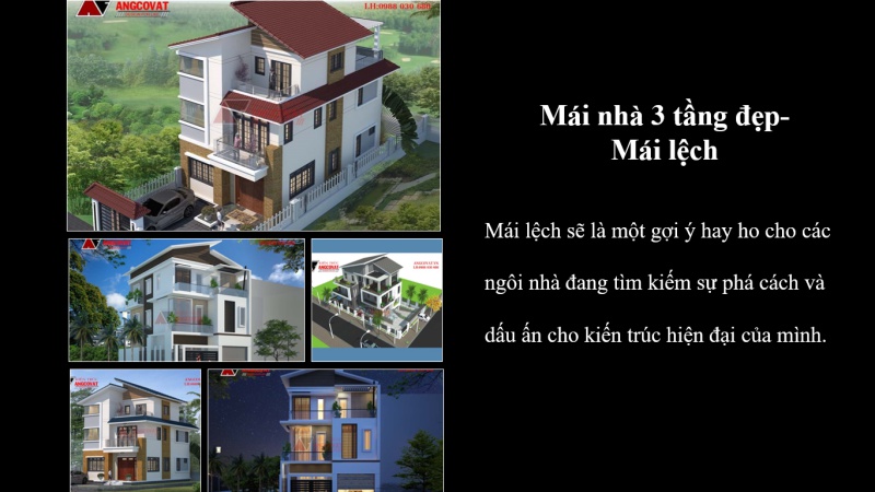 Mái nhà 3 tầng đẹp- Biệt thự 3 tầng mái lệch
