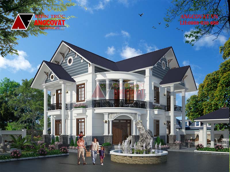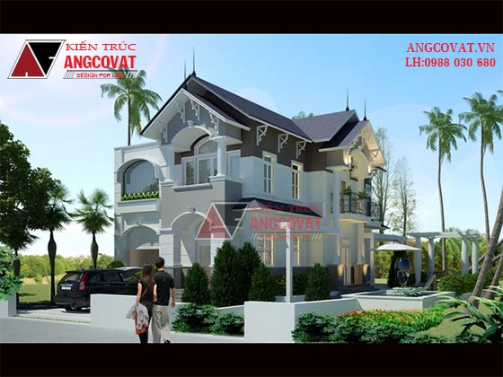 Mẫu thiết kế biệt thự 2 mặt tiền 2 tầng tân cổ điển đẹp - Mẫu 22