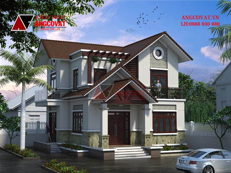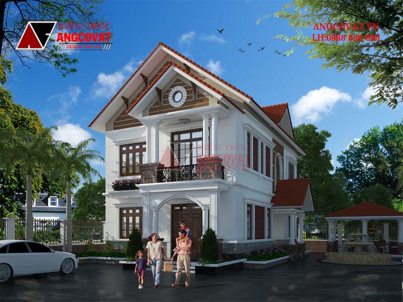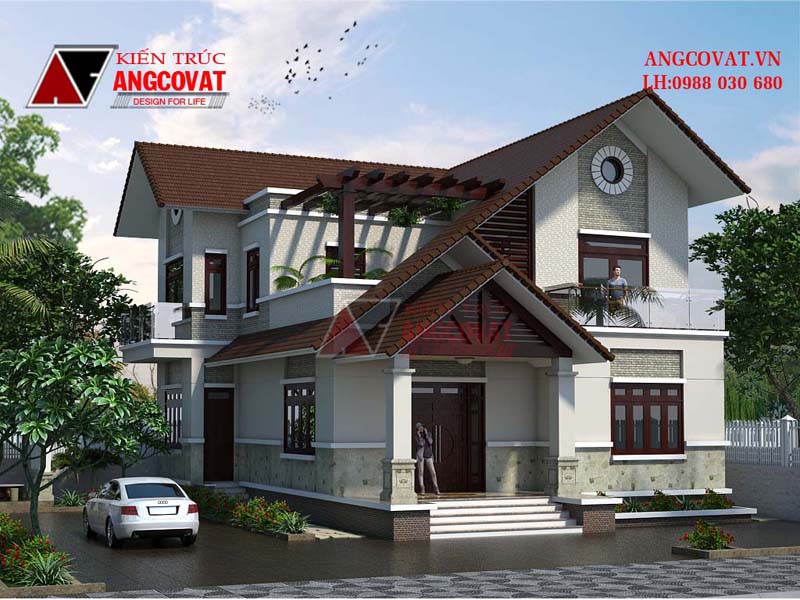 Mẫu thiết kế biệt thự 2 tầng 2 mặt tiền mái thái - Mẫu 19