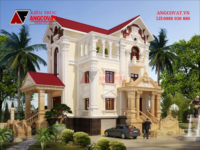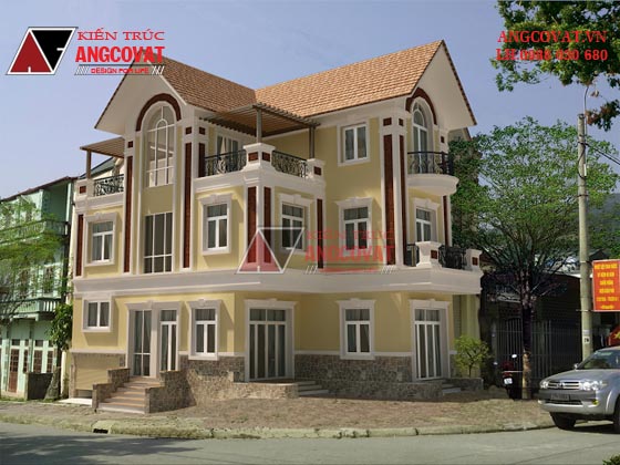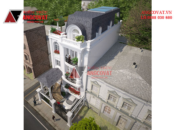 Mẫu thiết kế biệt thự 3 tầng 2 mặt tiền kiểu Pháp đẹp mê ly - Mẫu 45