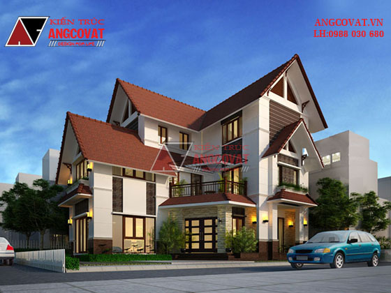 Thiết kế biệt thự 3 tầng 2 mặt tiền với hệ mái thái đẹp