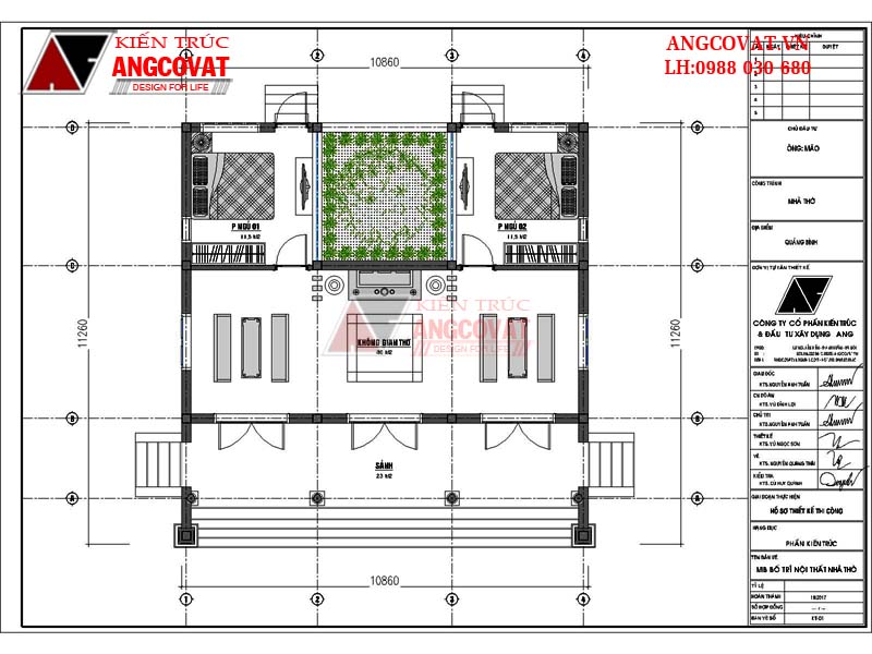 - Thông số diện tích, công năng sử dụng: Sảnh 23m2, Không gian thờ: 40m2, Phòng ngủ 1: 11,5m2, Phòng ngủ 2: 11.5m2