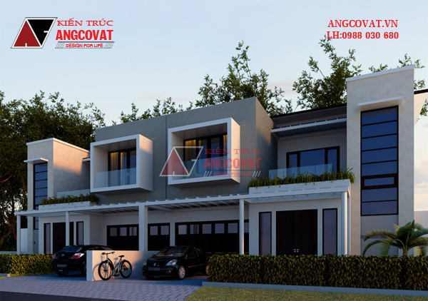Mẫu nhà mái bằng đẹp 2 tầng hiện đại theo kiểu nhà liền kề