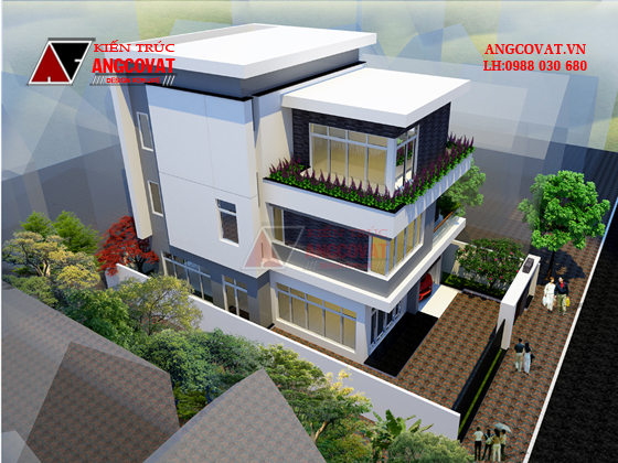 Thiết kế nhà mái bằng 3 tầng kết hợp không gian xanh