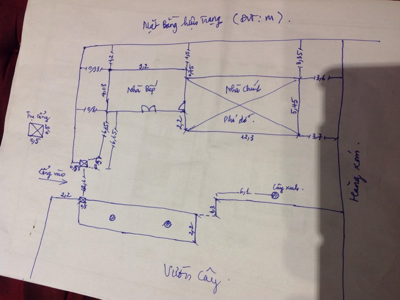 Trước khi lên mặt bằng công năng sử dụng cho mẫu nhà cấp 4 trệt 3 phòng ngủ 160m2 ở Bắc Giang, kiến trúc sư của chúng tôi đã đi khảo sát hiện trạng và đưa ra bản vẽ phác thảo hiện trạng cho ngôi nhà của anh Hiệp ở Bắc Giang.