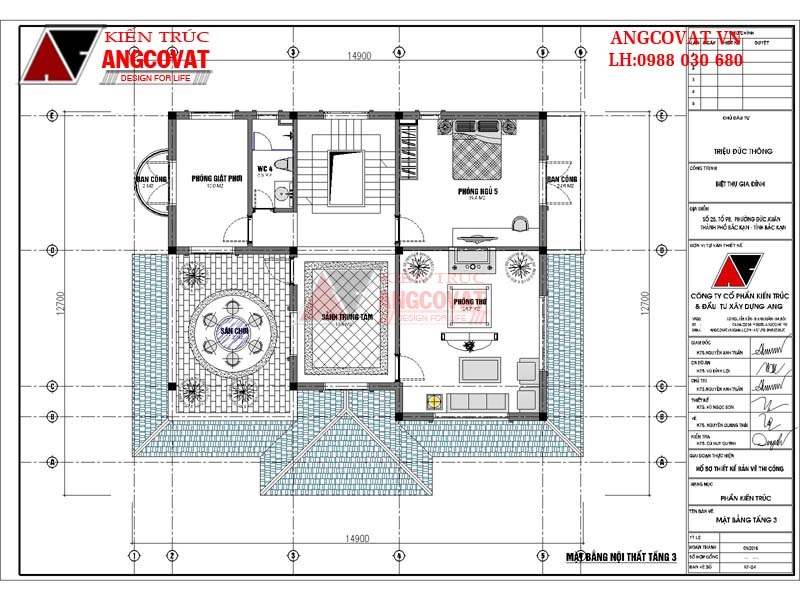 Hồ sơ thiết kế biệt thự mặt tiền 15m được bàn giao cho gia đình anh Thông vào cuối tháng 3/2018. Hiện nay công trình vẫn đang trong quá trình thi công. Chúng tôi vẫn thường xuyên liên lạc để kịp thời giải đáp các thắc mắc về bản vẽ kĩ thuật cho gia đình anh. Hình ảnh và thông tin của ngôi biệt thự sẽ được chúng tôi cập nhật sớm nhất để quý vị có thể tham khảo thêm.