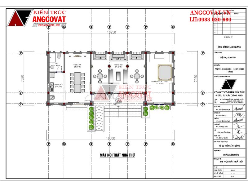 * Nhà thờ: Phòng thờ: 33m2, phòng ăn nhà thờ: 21m2m, sảnh 20m2, Phòng truyền thống 15.5m2