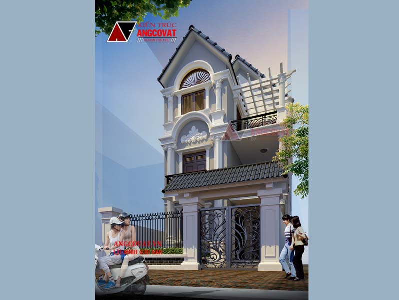 Mẫu số 2: Tư vấn thiết kế nhà biệt thự 3 tầng 1 mặt tiền phong cách tân cổ điển