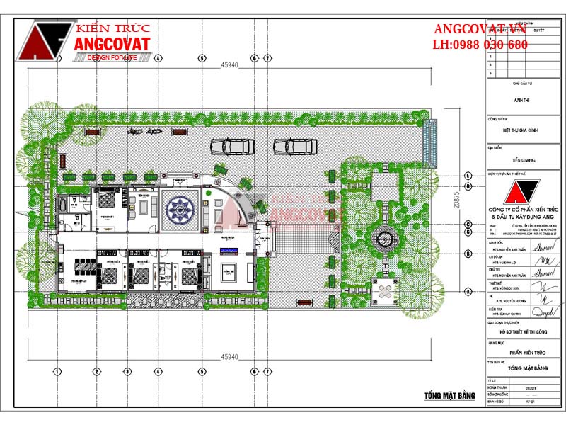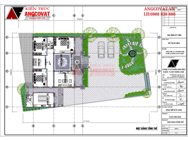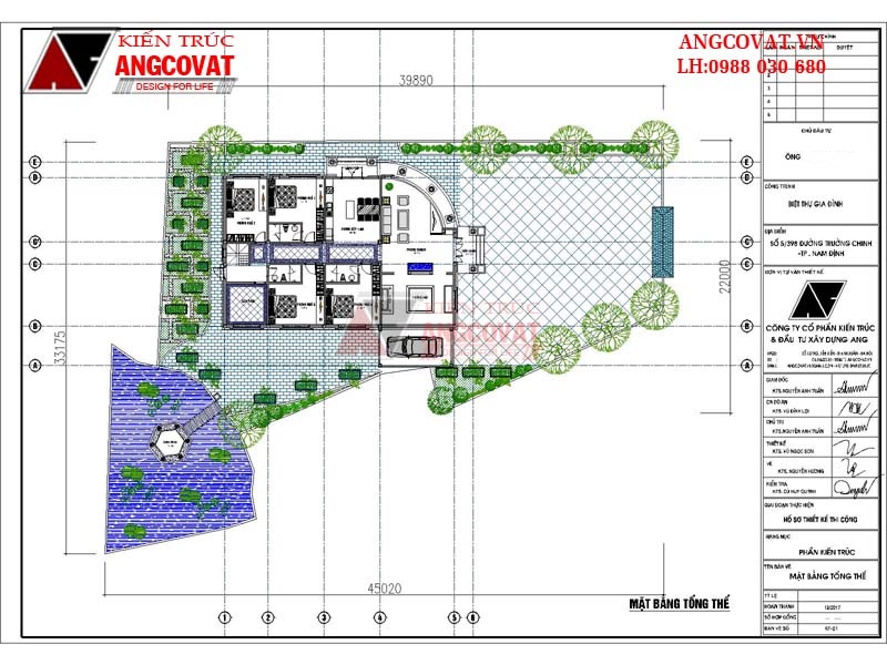 Bố trí tổng mặt bằng gọn gàng với sân vườn và tiểu cảnh hồ nước điều hòa không khí cho không gian sống của ngôi biệt thự