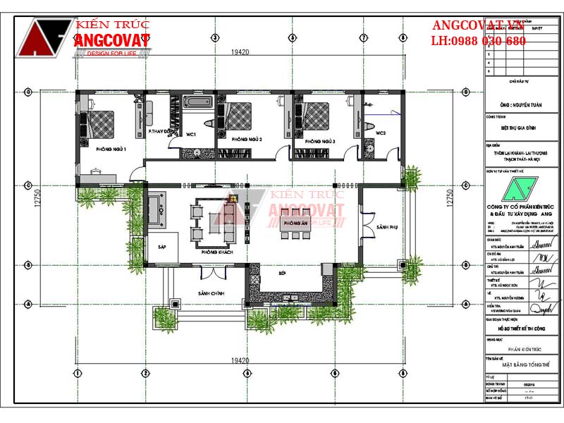Sơ đồ mặt bằng tổng thể xây biệt thự 200m2 3 phòng ngủ mặt tiền 16.5m