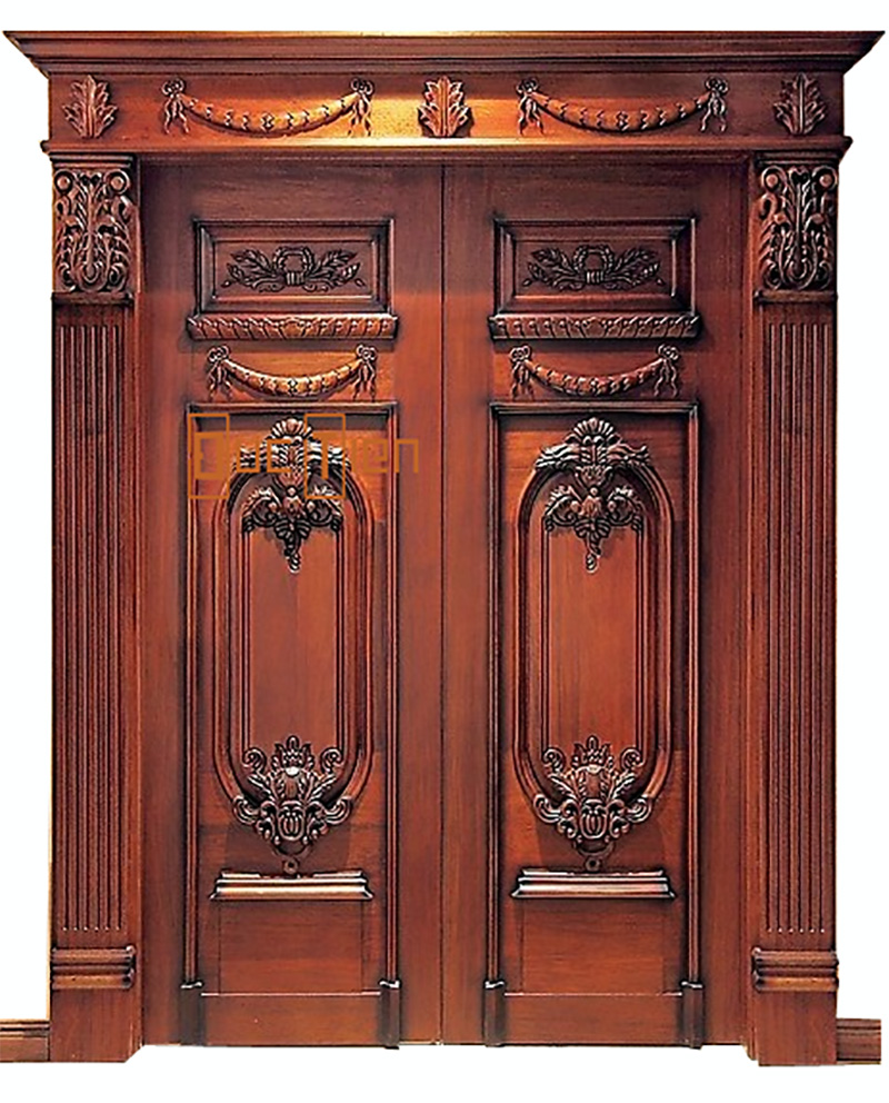 Mẫu cửa biệt thự đẹp bằng gỗ tự nhiên phù hợp với các thiết kế biệt thự cổ điển nhờ các chi tiết chạm khắc tinh tế, ấn tượng