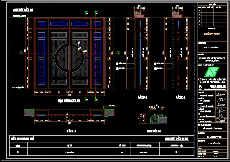 Chi tiết cửa đi trong hồ sơ thiết kế kĩ thuật thi công biệt thự,nhà ở