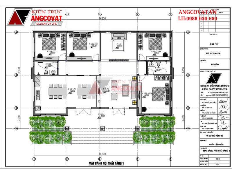 Tầng 1: 1 Phòng khách, 4 phòng ngủ, 1 phòng bếp ăn, 2 vệ sinh chung - Diện tích tầng 1: 160m2