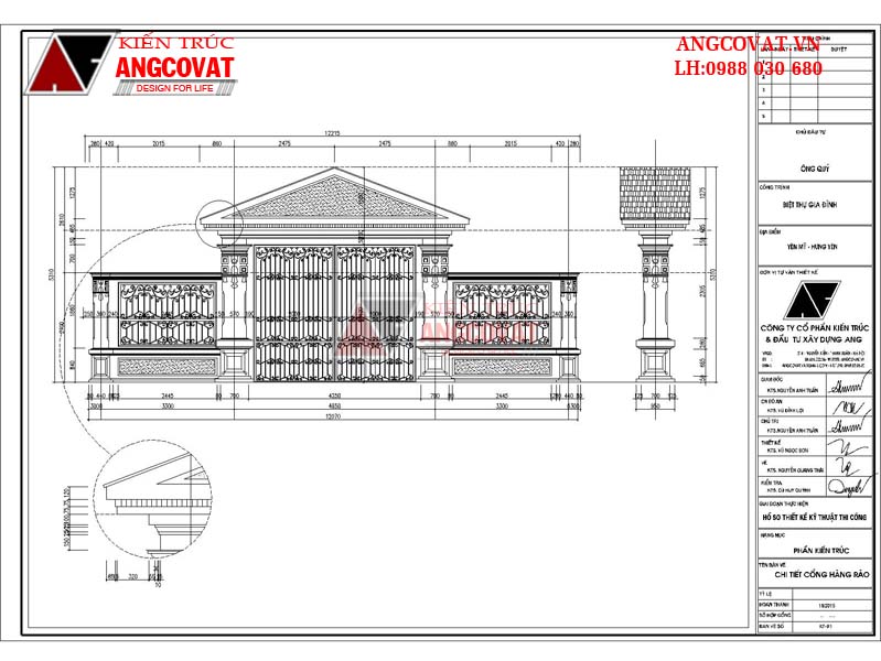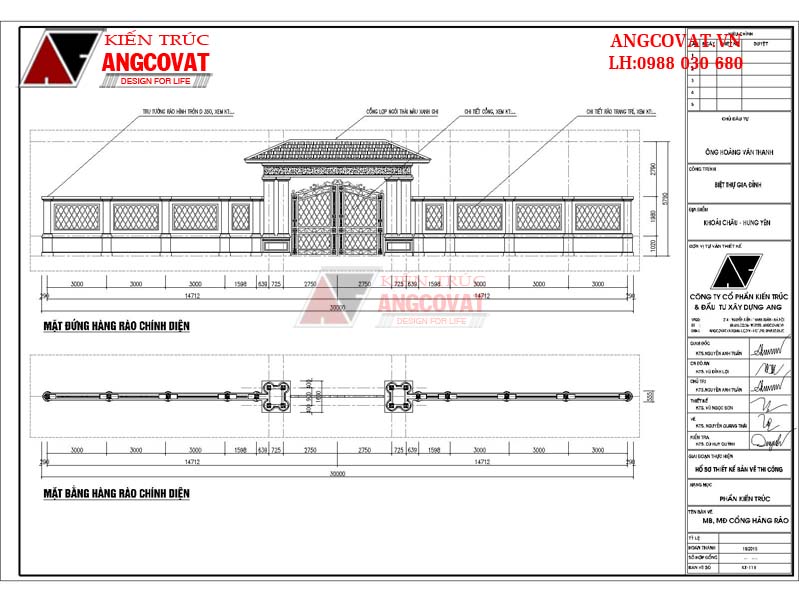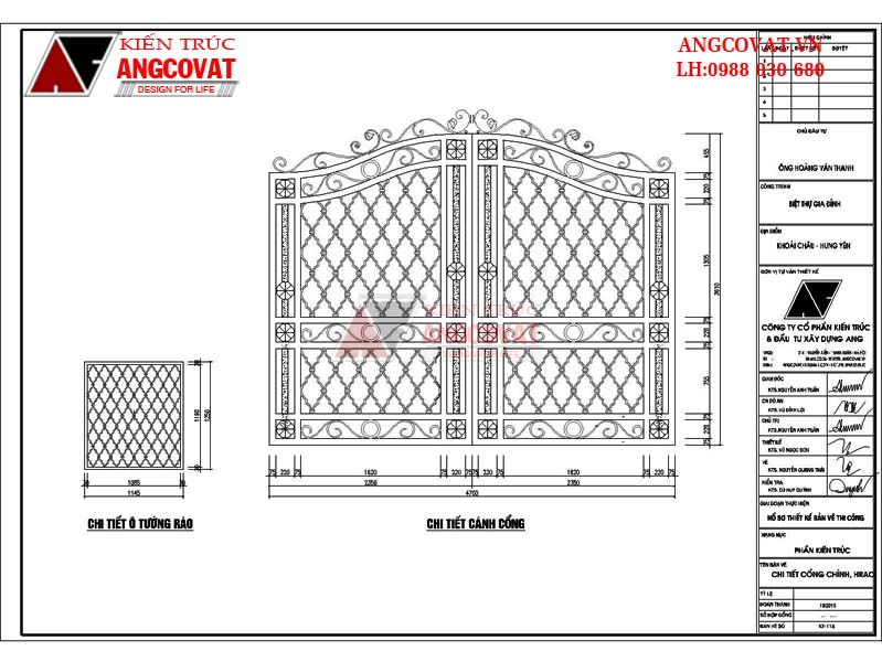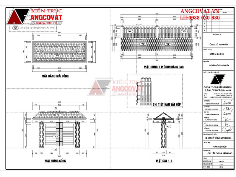 Bản vẽ mẫu tường rào cổng ngõ đẹp của nhà anh Quý ở Hưng Yên được thiết kế kiên cố kết hợp giữa xây gạch và sắt hộp sơn giả gỗ đầy đủ các bản vẽ như: