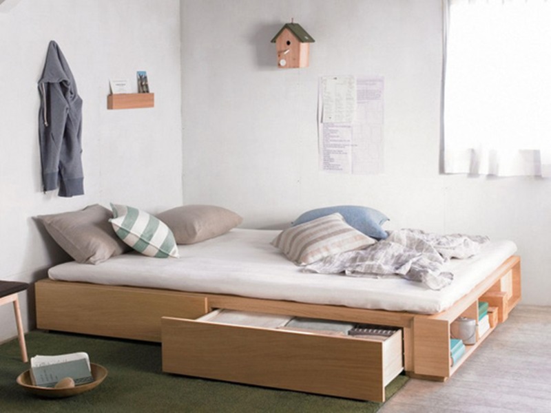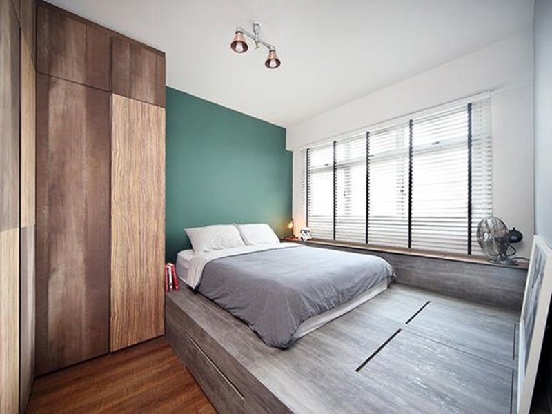 Còn gì tuyệt hơn khi bạn đặt một chiếc giường gấp trên bục gỗ có các hộc để đồ rất thuận tiện, bạn hoàn toàn không cần mua một chiếc giường cồng kềnh và nặng nề trong căn phòng ngủ nữa. Hãy đóng một chiếc bục gỗ để đồ và đặt nệm cao trên chiếc bục đó làm giường ngủ và bỗng chốc căn phòng của bạn hoàn toàn gọn gàng, sạch sẽ, hiện đại. Thiết kế phòng ngủ 10m2 cho vợ chồng, bạn sẽ ngạc nhiên khi trong đó đơn giản chỉ có tủ, bục gỗ đựng đồ kiêm đễ giường và một chiếc nệm là đã có ngay không gian sống đầy đủ.