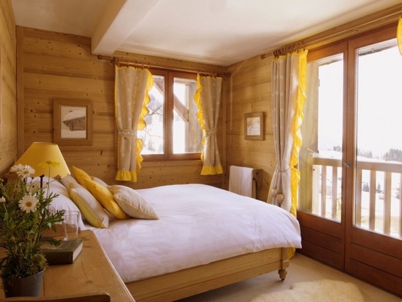 Thiết kế phòng ngủ 10m2 cho vợ chồng bằng gỗ với cách bố trí cửa thoáng rộng