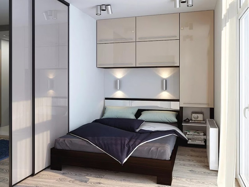 Một chiếc giường thông minh kết hợp với tủ quần áo âm tường thì còn gì tuyệt vời hơn khi thiết kế phòng ngủ 10m2 cho vợ chồng