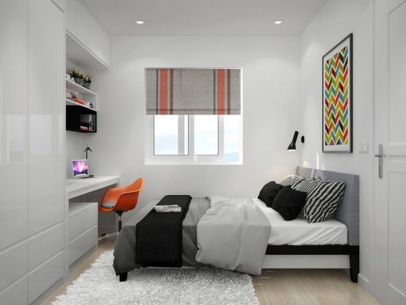 Sử dụng màu trắng sáng tạo nên sự trẻ trung cho phòng ngủ nhỏ đồng thời tạo sự sạch sẽ, gọn gàng, dễ kết hợp các gam màu khác