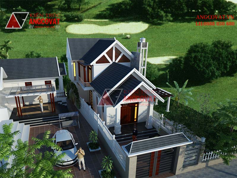 Với hệ thống mái thái xám đen, không quá nổi bật khá hợp với tổng thể mẫu nhà này.