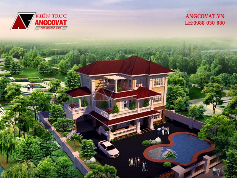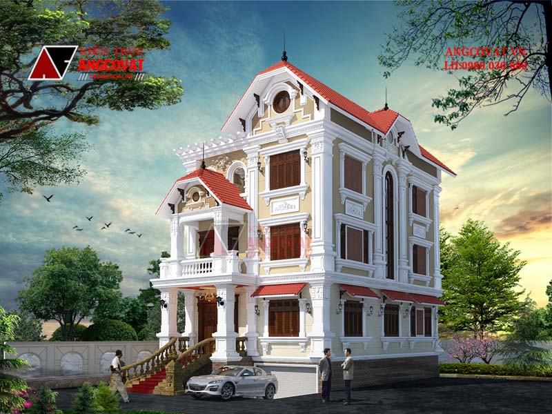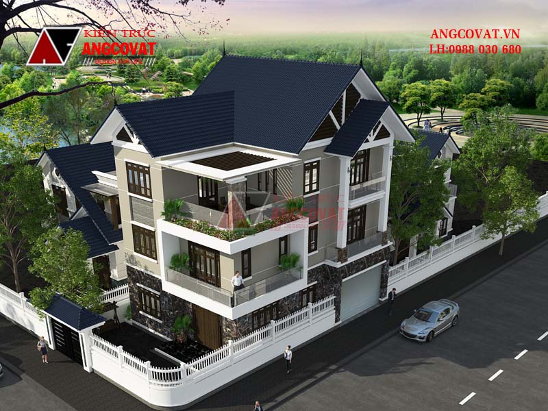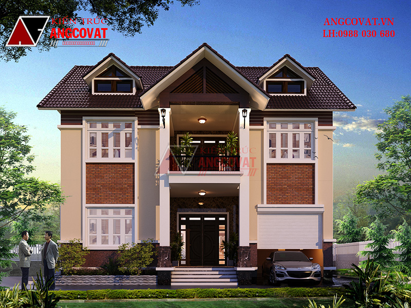 Mẫu thiết kế biệt thự mái nghiêng có gara ô tô chiều lòng các chủ đầu tư yêu thích phong cách độc đáo, mới lạ.