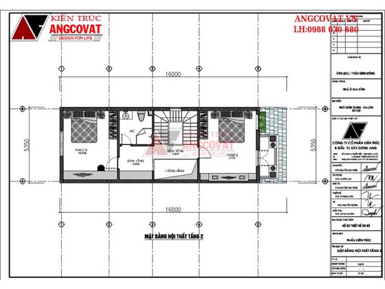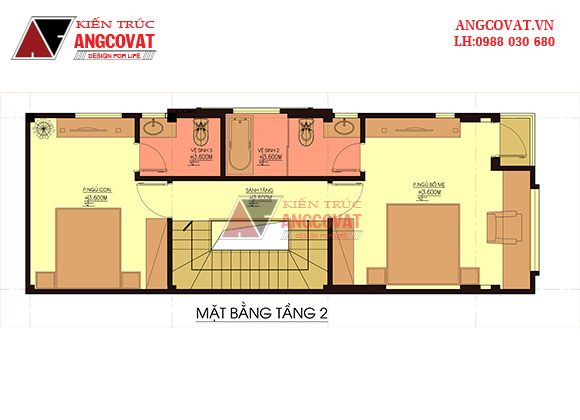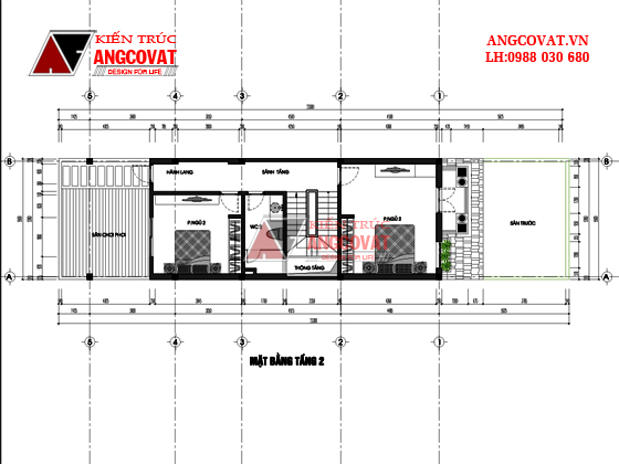 Mặt bằng tầng 2 – mẫu nhà phố 3 tầng mặt tiền 5m ở Phú Thọ