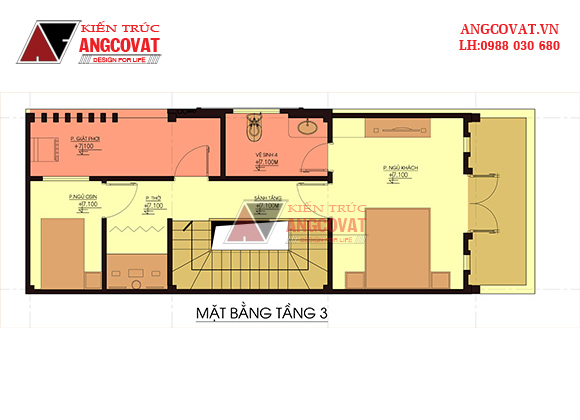 Mặt bằng tầng 3 – mẫu nhà phố 3 tầng 5m mặt tiền hiện đại