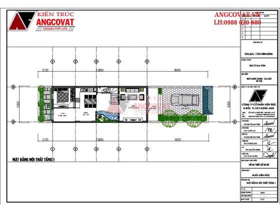 Mặt bằng bố trí nội thất tầng 1 – mẫu nhà 3 tầng 5m mặt tiền độc đáo ở Hưng Yên