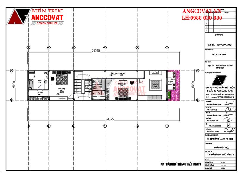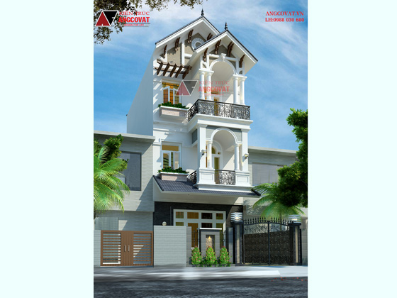 Mẫu nhà phố 3 tầng trên đây được kiến trúc sư Angcovat thiết kế cho chủ đầu tư là ông Nguyễn Văn Viện ở Yên Mỹ Hưng Yên với mặt tiền 5m, chiều sâu 18m. Mẫu nhà phố 3 tầng mặt tiền 5m được thiết kế theo phong cách kiến trúc tân cổ điển đẹp và tráng lệ khiến gia chủ vô cùng hài lòng. Tuy kích thước của ngôi nhà phố này khá hẹp nhưng dưới bàn tay khé léo của kiến trúc sư Thảo đã biến không gian và công năng sử dụng của ngôi nhà vượt xa mức tưởng tượng của gia chủ. Ngôi nhà còn được điểm tô bằng màu xanh của cây lá, màu xanh của thiên nhiên làm cho không khí trở nên trong lành và còn tăng thêm tính thẩm mỹ cho ngôi nhà.