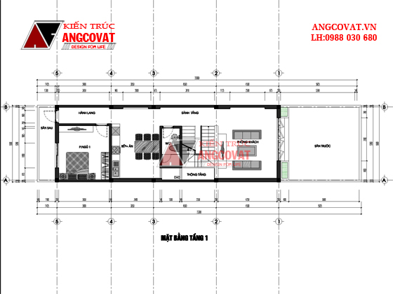 Mặt bằng công năng tầng 1 – mẫu nhà phố 3 tầng 5m mặt tiền ở Phú Thọ