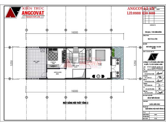 Mặt bằng bố trí nội thất tầng 3 – mẫu nhà 3 tầng 5m mặt tiền độc đáo ở Hưng Yên