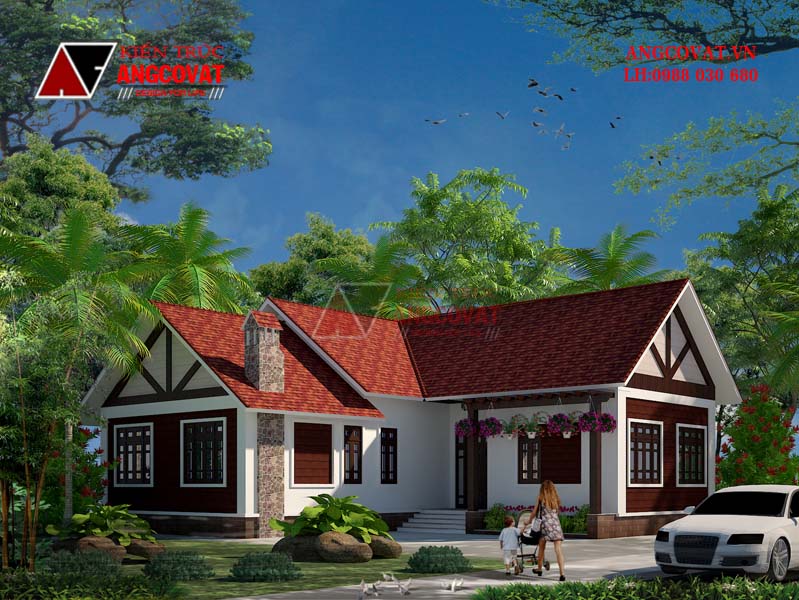 Lại thêm một mẫu nhà chữ L mới mà bạn không nên bỏ qua. Đây là mẫu nhà 1 tầng đẹp nhìn có dáng dấp giống với những mẫu nhà của người Việt Nam trước đây. Tuy nhiên, sự hiện đại lại được thể hiện ở những phần trang trí ngoại thất như chi tiết hoa văn mặt tiền ở dài phần tường dưới mái hay phần tường nổi ốp đá tại phần đốc nhà. Tất cả đều tạo điểm nhấn, làm cho ngôi nhà của bạn không bị lẫn vào những ngôi nhà khác