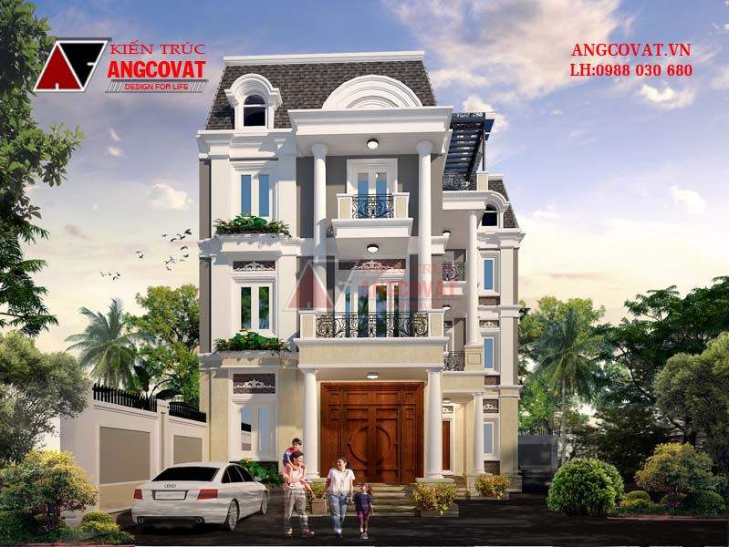 1.6: Thiết kế nhà hình chữ L 3 tầng tân cổ điển.
