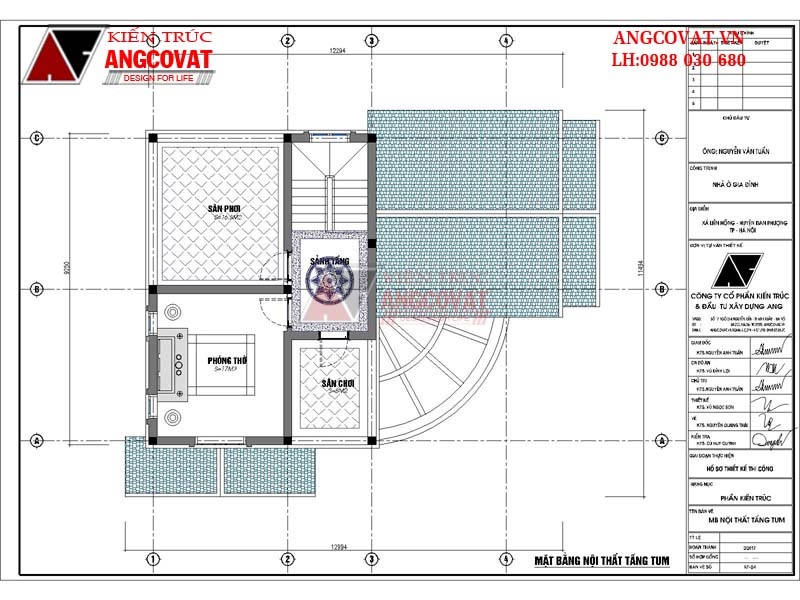 Vì mẫu nhà đã tận dụng hết đất để xây dựng nên việc phơi phóng đồ đạc cần chuyển lên sân thượng và trở thành tầng tum của mẫu nhà 2.5 tầng đơn giản được bố trí làm sân phơi, sân chơi và một không gian thờ cúng cho gia đình vừa không làm ảnh hưởng đến các hoạt động sinh hoạt vừa thể hiện được lòng thành kính của con cháu với ông bà tổ tiên, vì thế người ta hay đặt phòng thờ trên cao nhất. Phòng thờ tầng 3 diện tich 12m2.